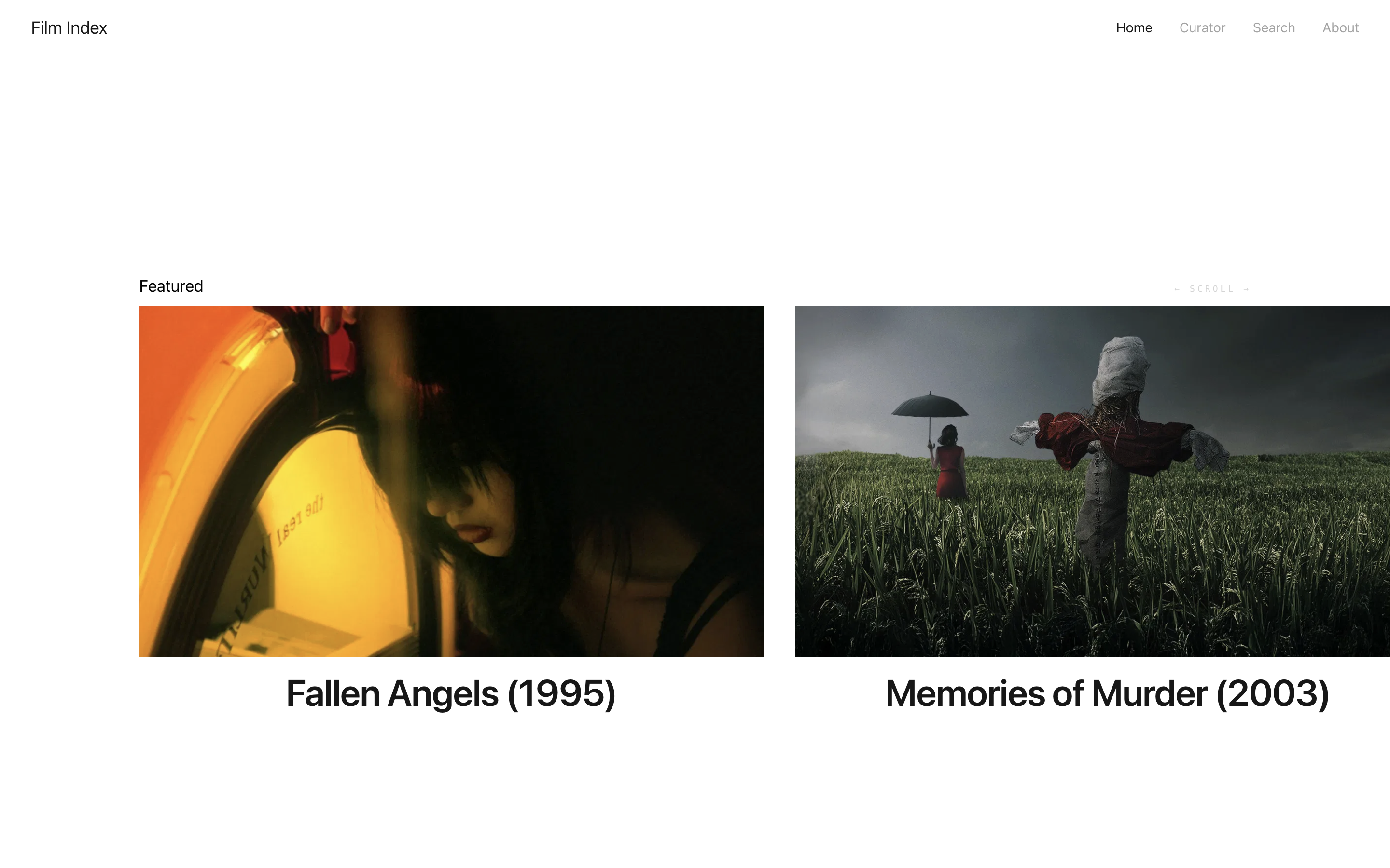 a film browsing site. search and view movies in a gallery format with images and metadata pulled from external apis.